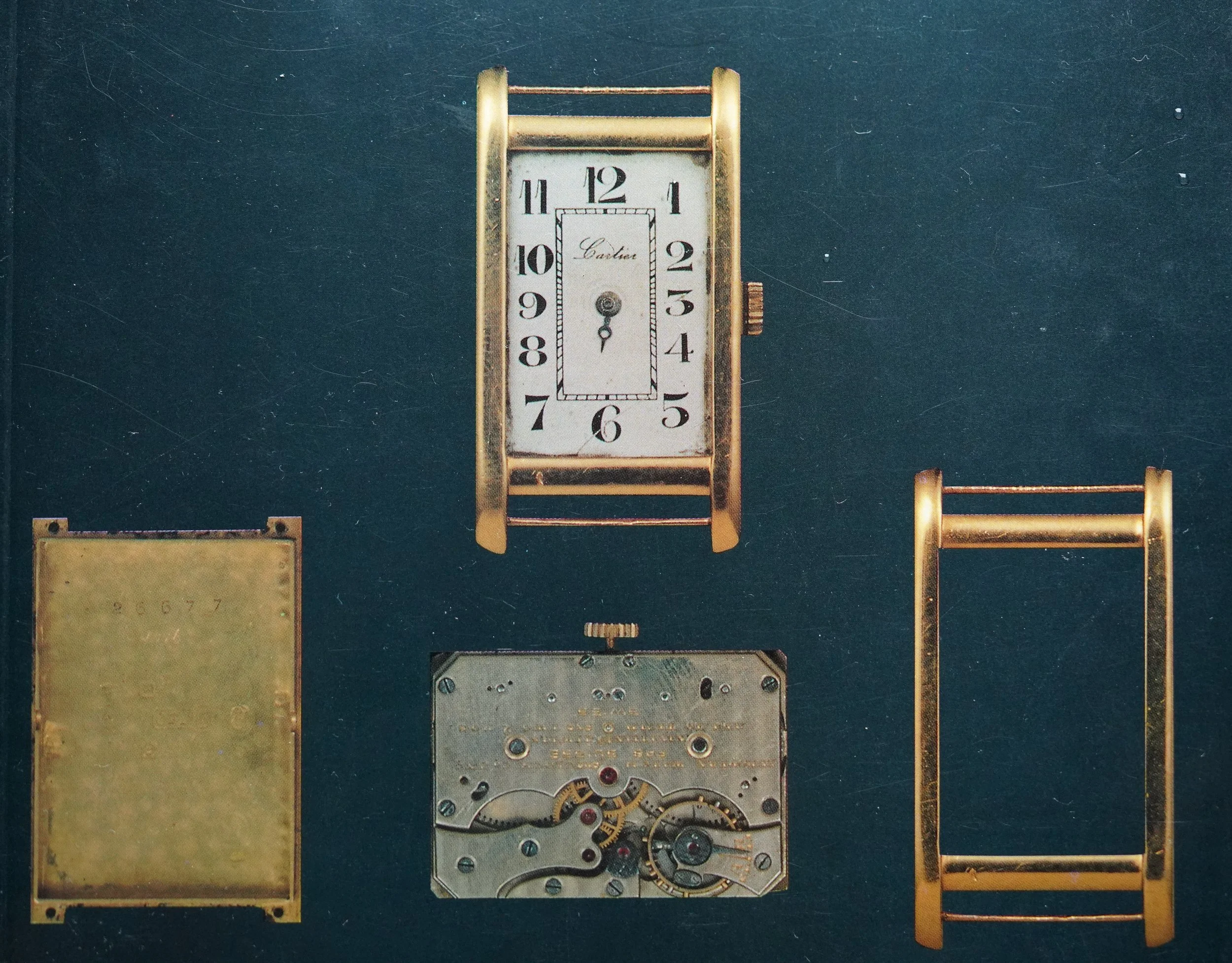 Minute hand replaced in 1989. “Case No. 26677. Men’s rectangular Cartier 8 day wristwatch, circa 1933. 18K yellow gold. Movement by European Watch & Clock Co., manufactured by Cartier Paris.” Image credit: ‘Cartier: a century of Cartier wristwatches’ by George Gordon (page 133).