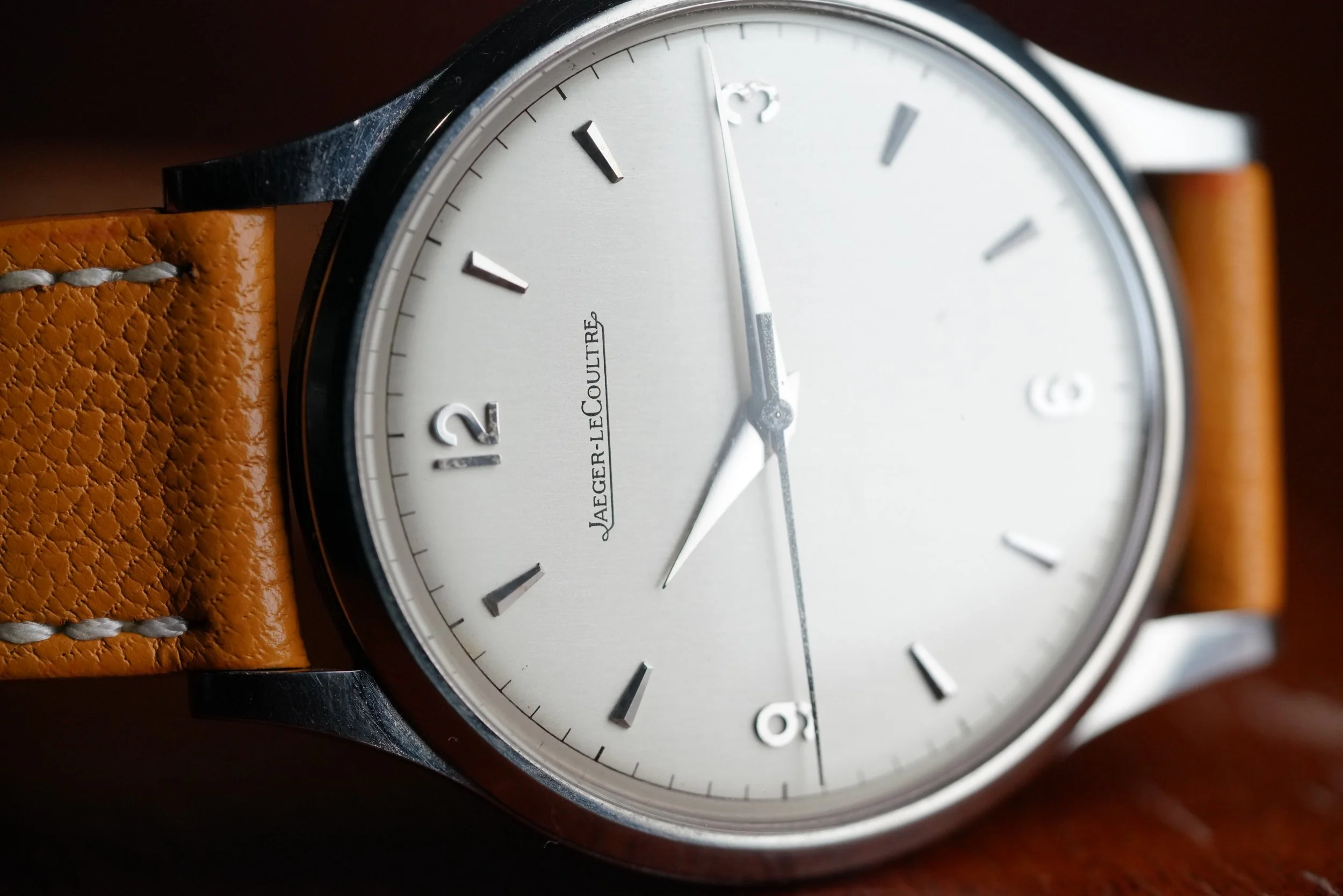 Early on, my heart gravitated towards simple, manual-wind wristwatches from the likes of Patek Philippe, Audemars Piguet, Longines, and the other Who’s Who of brands. During these years, I believed that Rolex was just a bit too obvious, and convinced myself that these other brands possessed greater horological heritage (Oh how things changed when I held that Rolex Oyster Perpetual reference 1018). Yet, none of the traditional time-only dress watches from the [watchmaker’s] watchmaker received the prestige that the aforementioned brands had. Also, I had yet to encounter a simple, Jaeger-LeCoultre that was both “oversized” and also in steel. The minimalist three-hand designs in the 1940-1960s were always something that I appreciated. I won’t go down the “less is more” mantra, but being renowned for complications and mass-production, the restrained designs from JLC seem to be overshadowed by everything the brand has come to be known for. It would have been foolish to pass on the watch.