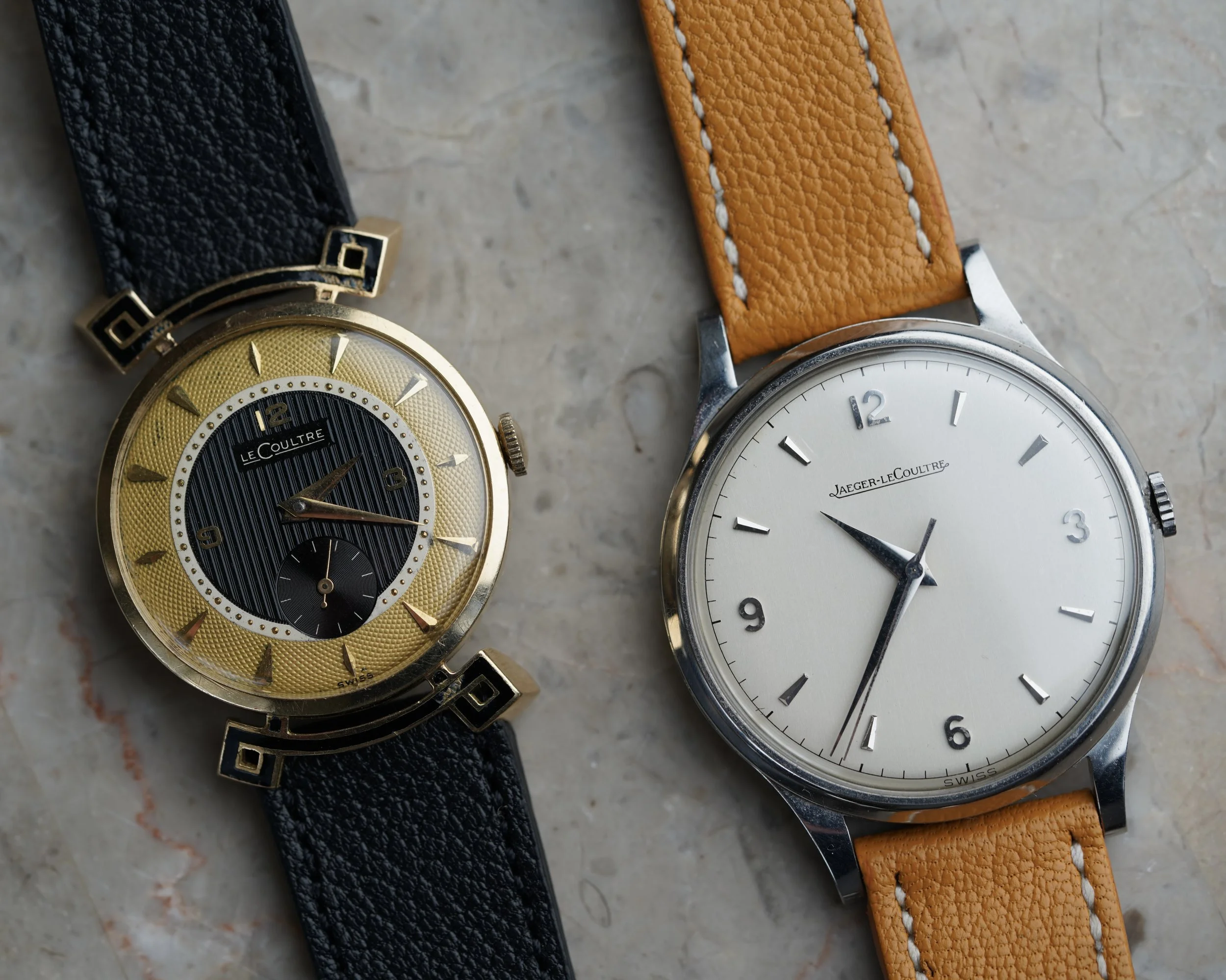 Jaeger-LeCoultre reference 2983 and LeCoultre Memovox reference 2404 (33.5mm wide or 42mm lug-to-lug) from circa 1962.