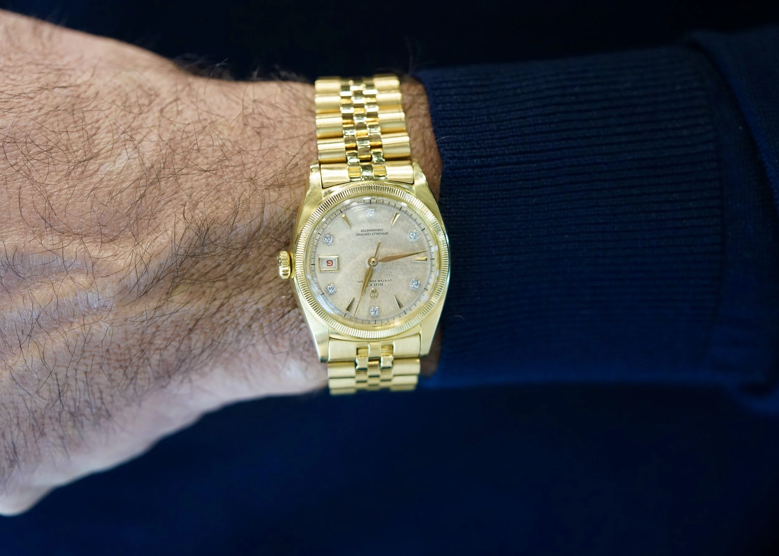 However, one watch that got a lot of action over the weekend was his 18K yellow gold Rolex Datejust reference 6104. Not only had the dial developed beautifully over the decades, it featured incredible diamond hour markers. “I love alternative diamonds. For me, it is the best configuration ever!” I agreed with him on the fantastic watch, and he then offered it to me for a cool €80k.