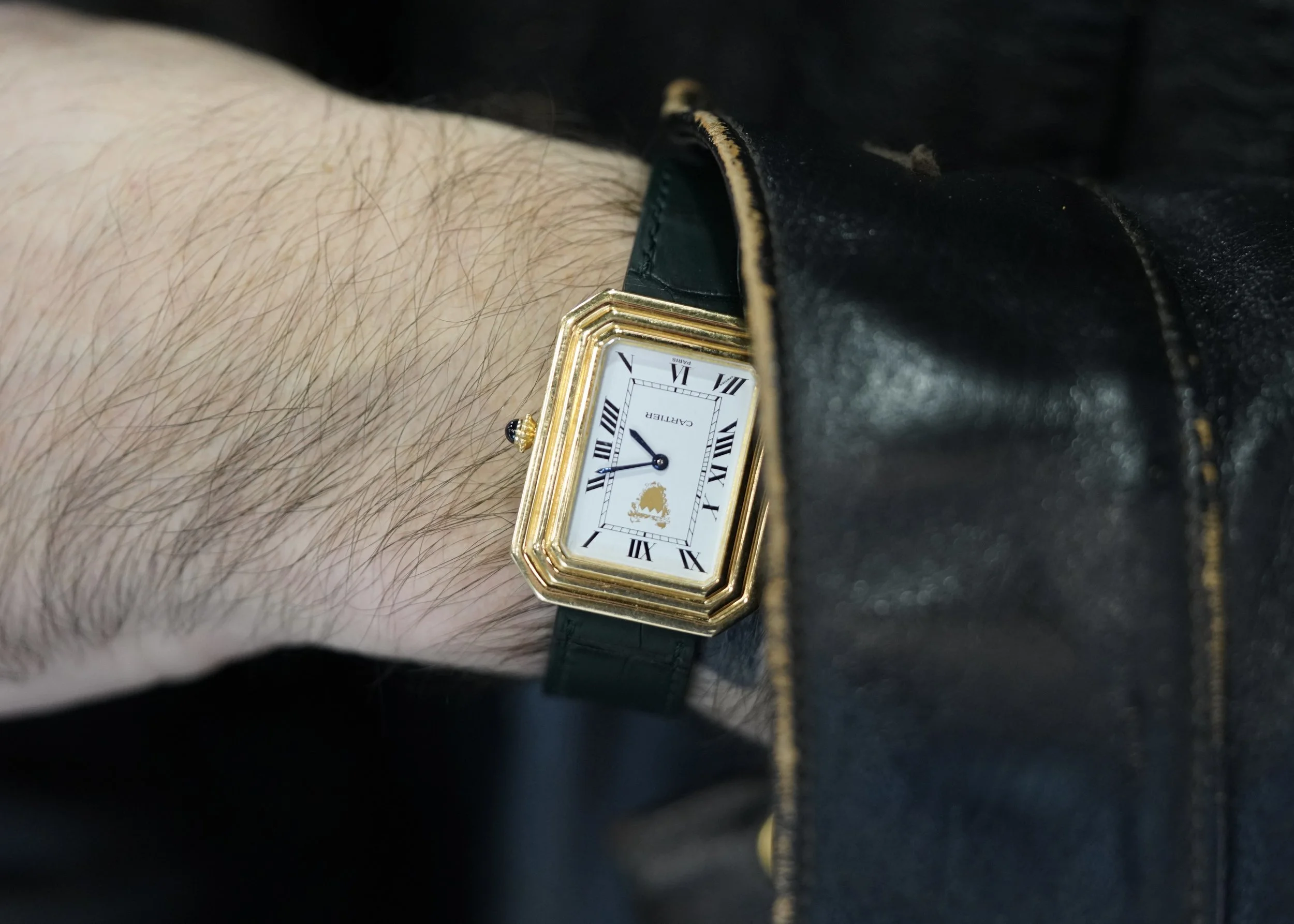 “I had been looking for a Cartier Cristallor for about a year before I found one for a great price in Tokyo. Then about a month later, a dealer in Dubai sent me a photo of another Cristallor, this time with the Bahraini emblem on it and the Cartier logo moved to 6 o'clock. Naturally I couldn't stand there being another Cristallor out there even cooler than mine, so I sold the original and quickly bought this one! Typical collector nonsense!”