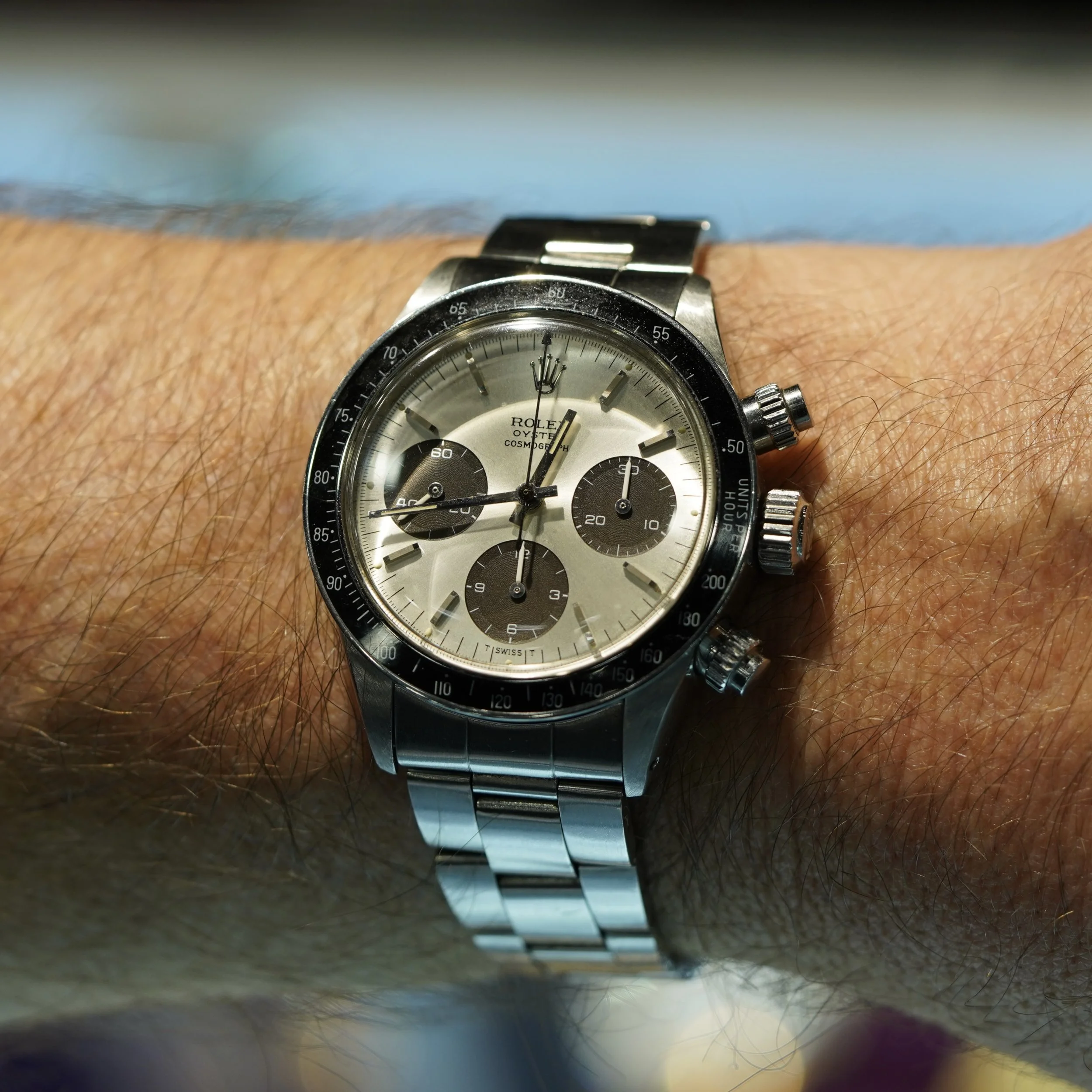 “I had been considering a 116520 for quite a while. I have always liked the simple efficiency of the 4130 movement and dial layout with running seconds at 6. What made me finally pull the trigger on my first Daytona? I found this one mid last year, complete, unworn and with its papers dated to the exact day of my wedding.”