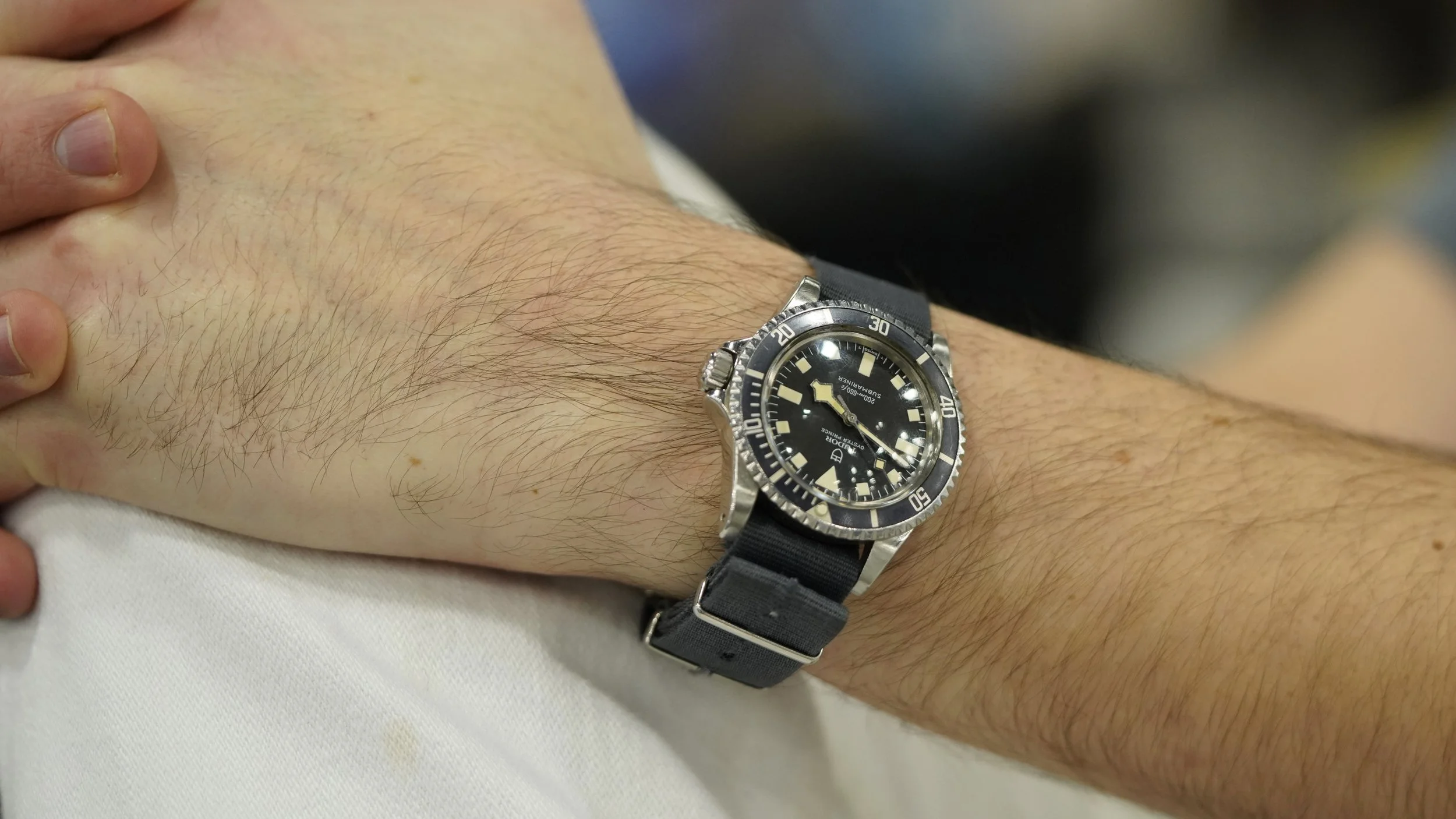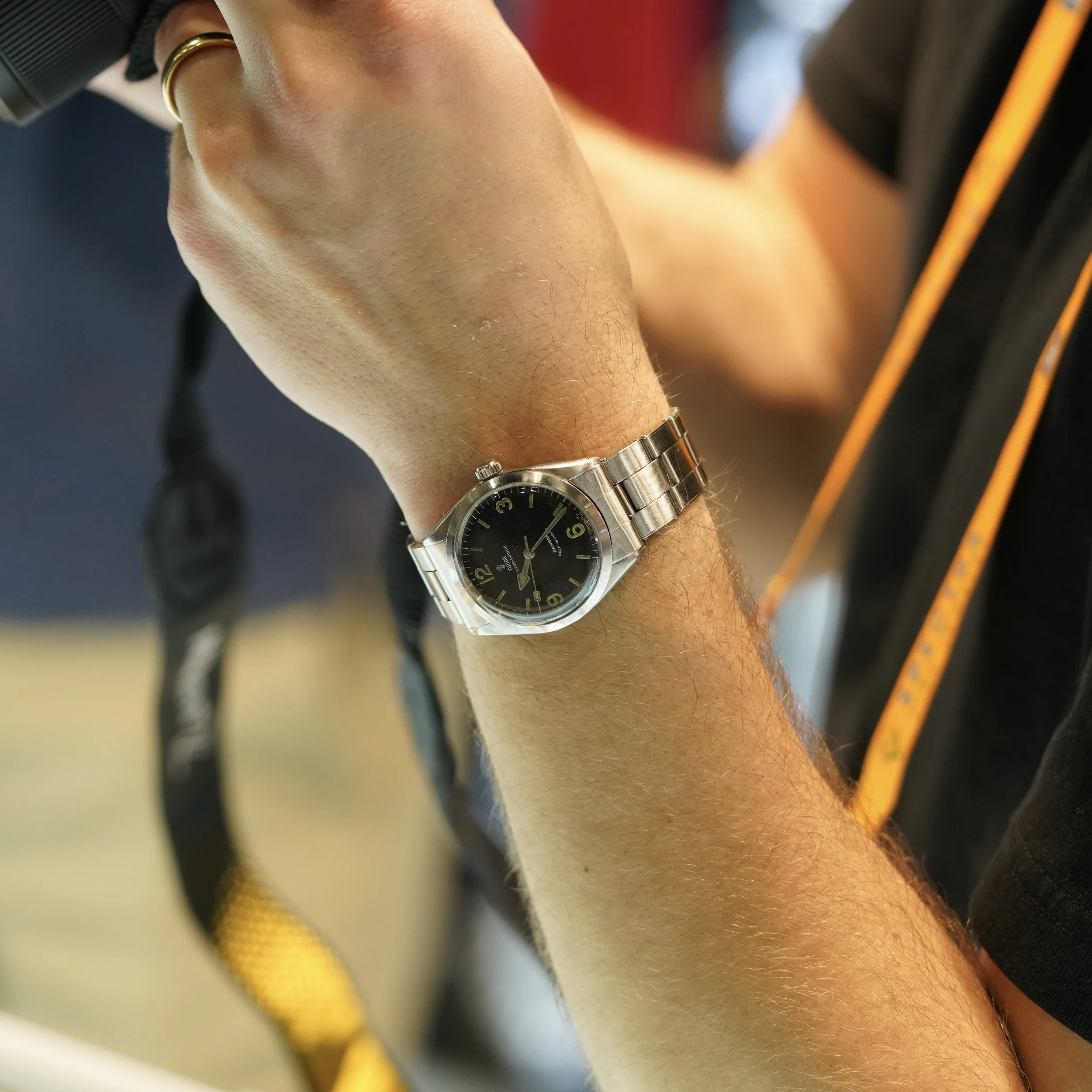 Showing up in style was George Nelson (@heygeorge) wearing a very cool vintage Tudor Prince Oyster-Date that went well with his denim button down.