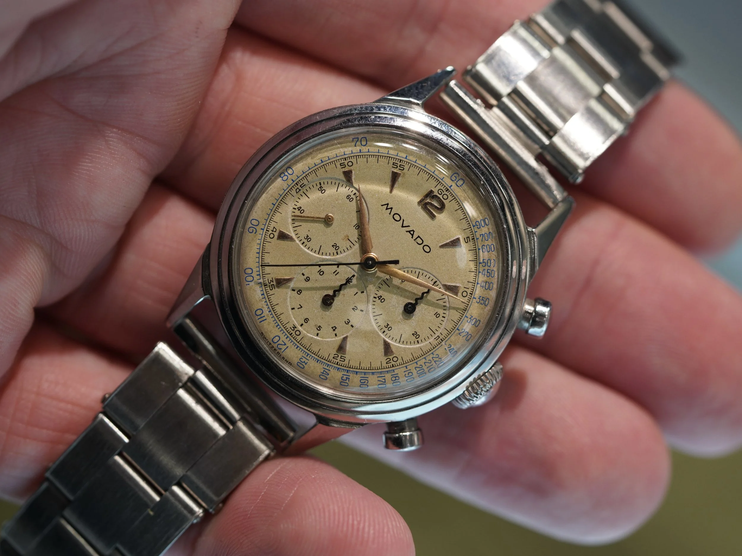 Throughout the weekend, Traina would also rock his tropical Universal Genève Polerouter Date, and Movado M95 chronograph with “reverse panda” dial.