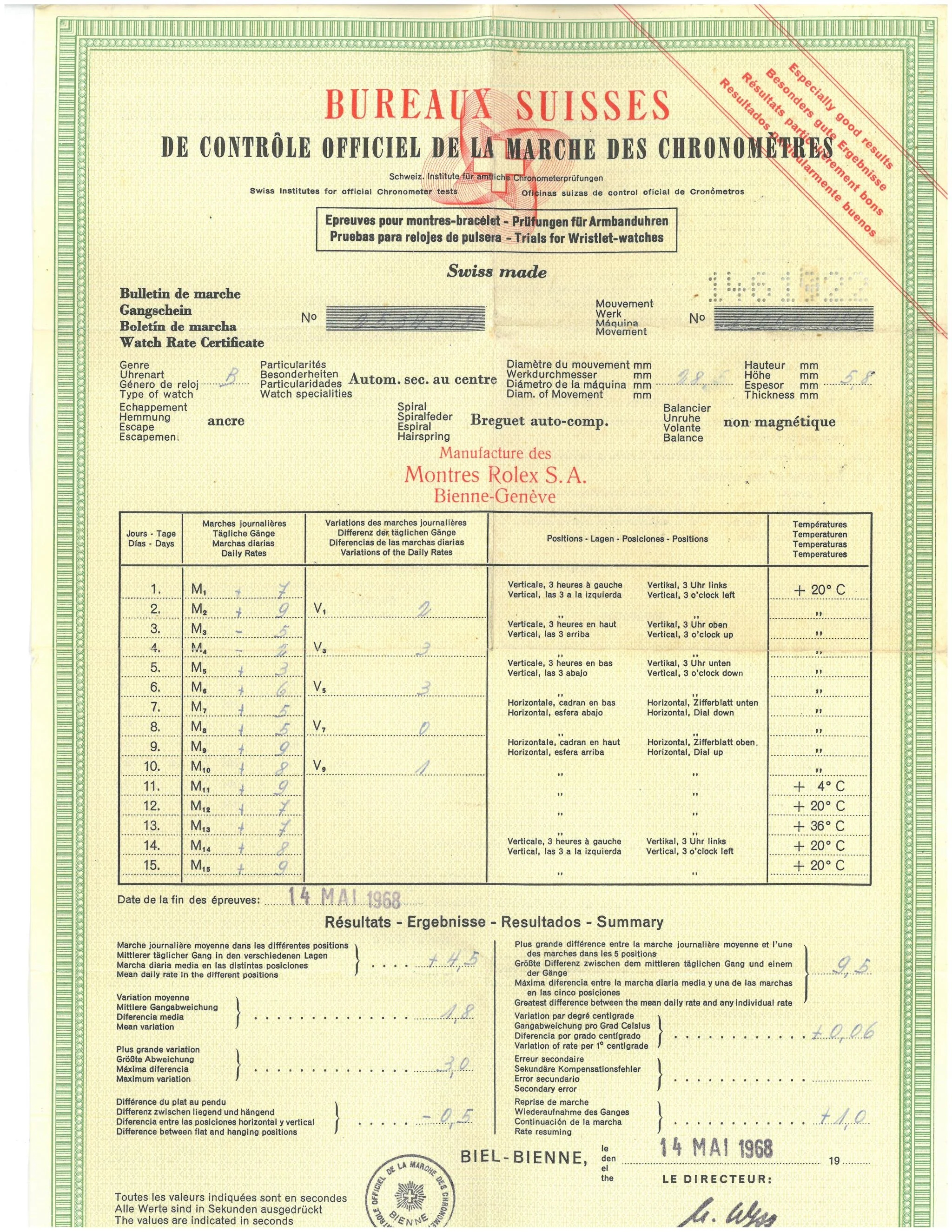 As seen in a recent offering by Sotheby’s, in the few occasions in which a reference 1018 is offered with COSC certification papers there seems to have been a wide gap between case production and being cased and undergoing chronometer testing.