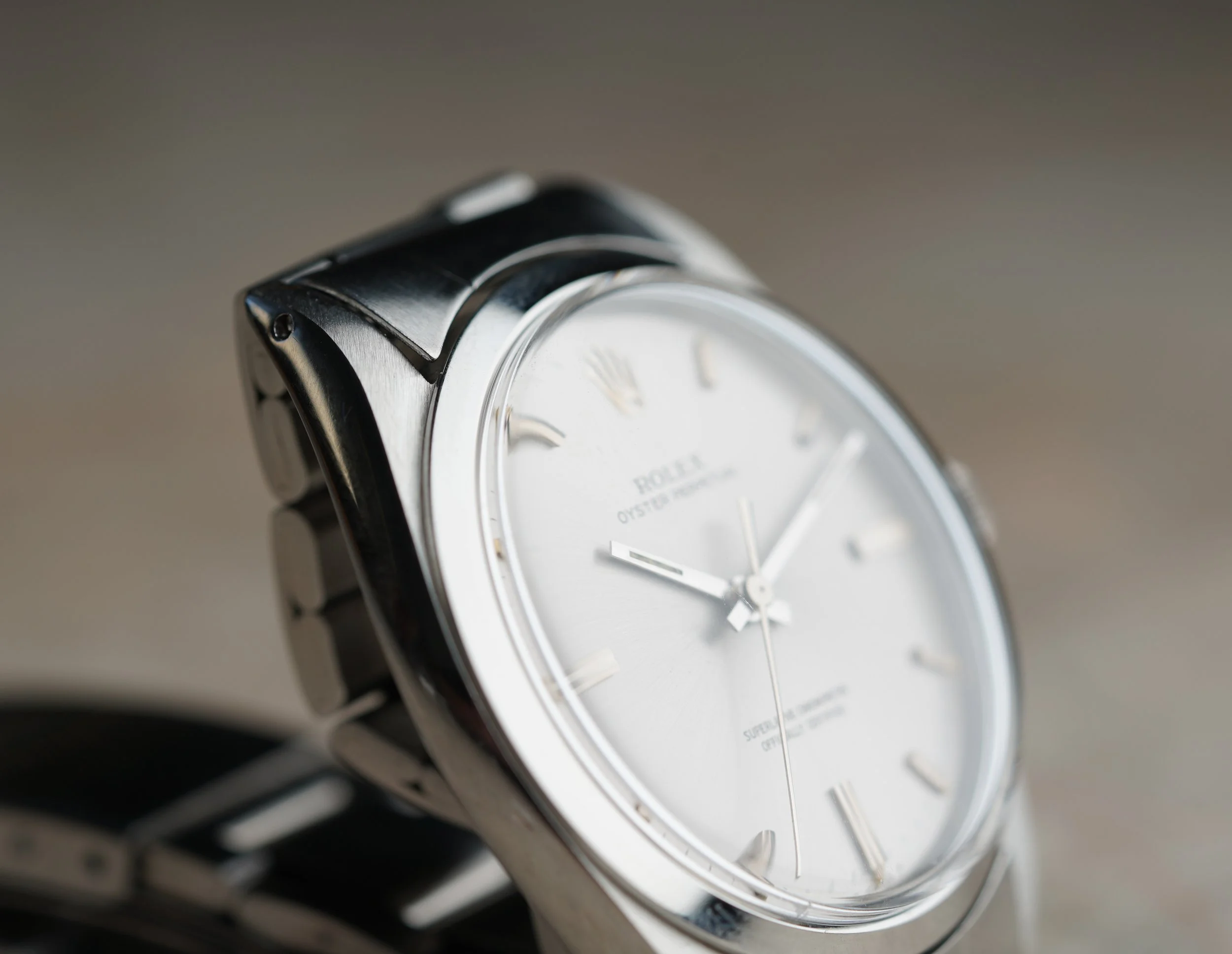 Oyster Perpetual 1018 with Baton Hands and Milky-Silver Soleil Dial Circa 1969